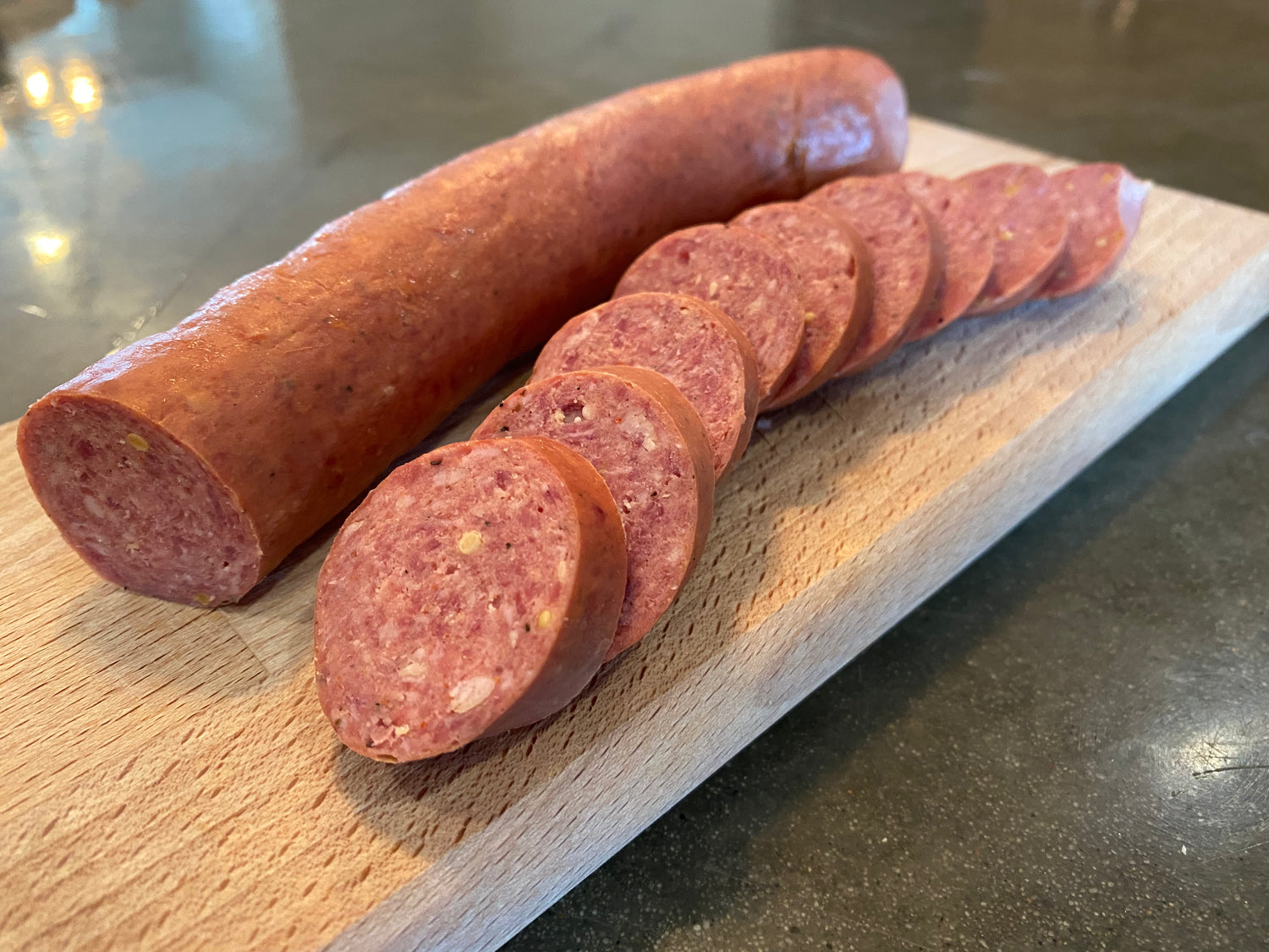 A classic sausage that we think you'll love. The smoked garlic is part of our "Simple Ingredients" collection. It tastes great over a camp fire, fried in a pan or fresh as a snack in the car. It's a great go to!